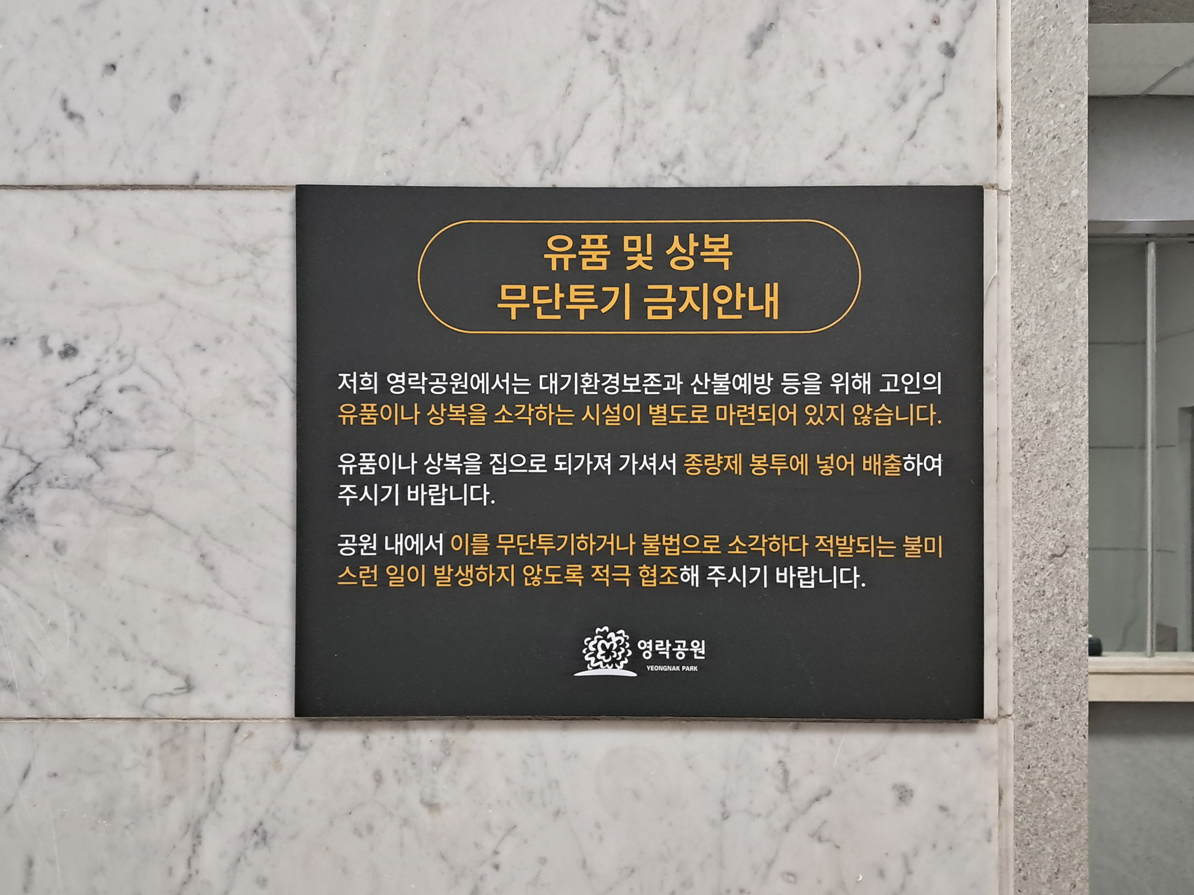영락공원 실내 사인물