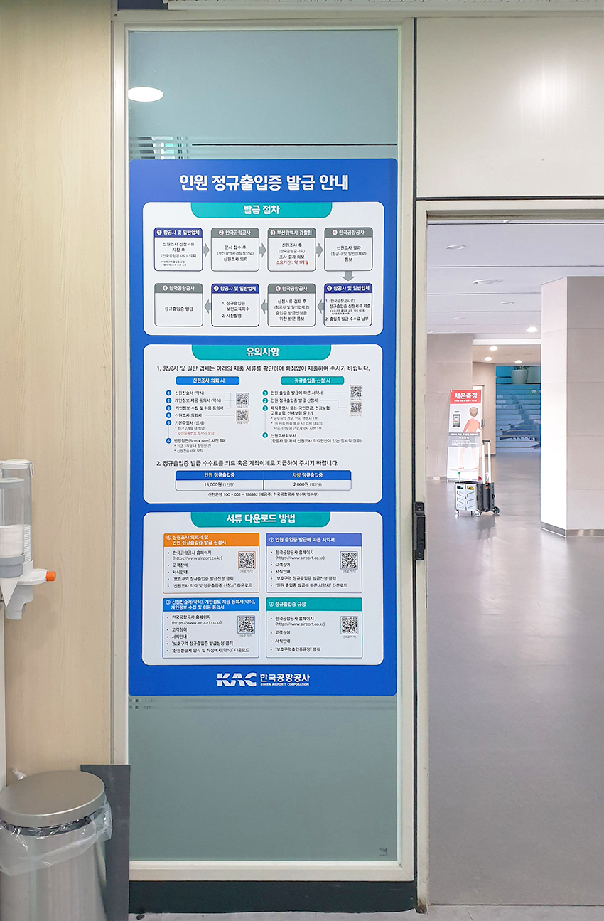 출입증 발급 안내사인